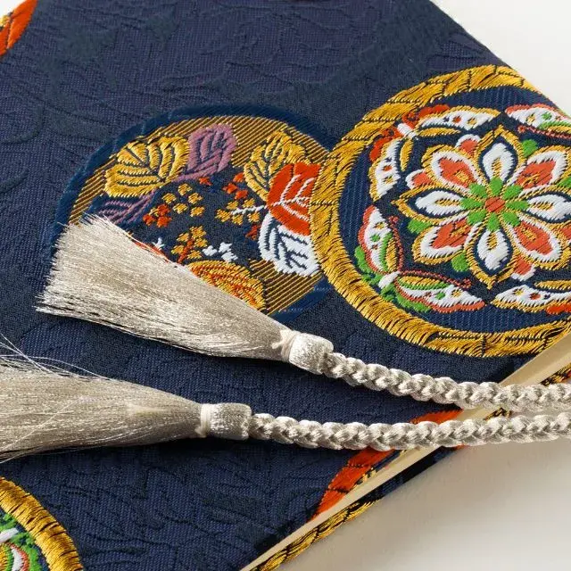 純和風の高級金襴を芳名帳へと大胆アレンジ!製本用に作られたものではなく高品質な京都西陣の生地を採用しています。かわいらしいピンクの金襴生地とシックな紺の2種類のカラーバリエーションが楽しめる芳名帳です。