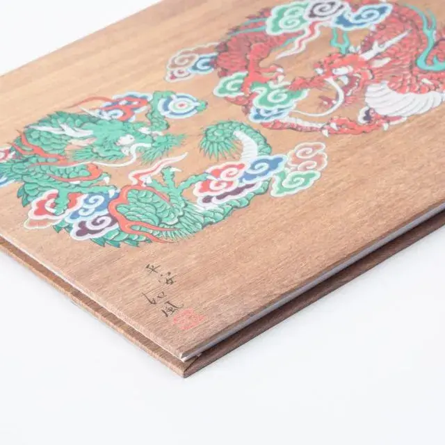 宮絵師とは神社様やお寺様を「彩色」で彩る絵師のこと。日本唯一の宮絵師、安川如風先生の描く優雅で荘厳な絵の数々。今回はそれらの中から鳳凰、阿吽竜の2点を御朱印帳へと仕立ててみました。