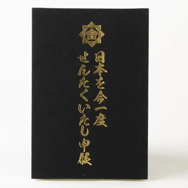 高知が生んだ稀代の名士、坂本竜馬が御朱印帳になって新登場。今回は大判寸法で作り、中身の和紙は鳥の子紙を使用。他に、黒和紙と、黒和紙と白奉書を合わせたハイブリッドの合計3種類の中身を選んでいただく事が可能になりました。