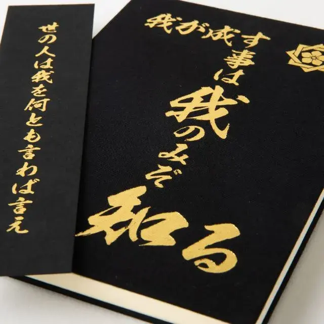 表紙には金箔で装丁しております。また、写真にあります御朱印帳しおりもお付けしておりますのでご一緒にご利用ください。