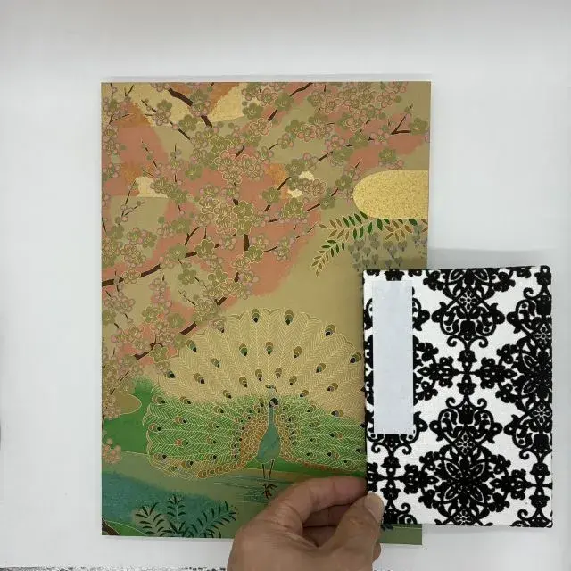 「A4サイズの御朱印帳、使ってみたいけど大きすぎるなあ~。」ってご意見があったので、ちょっとハードル低めで使っていただけるお買い得モデルを作ってみました。ページ数は通常の48ページ、表紙も友禅柄を採用してロープライスを実現。サイズは幅21cm x 高さ30cmのいわゆるA4サイズ。限界突破のさらに向こうへ。